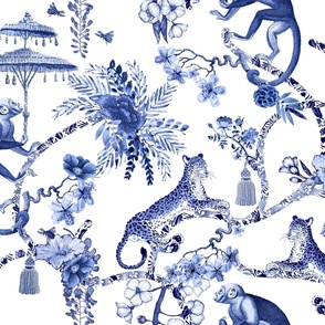 Chinoiserie Whimsy Blue And Spoonflower. Chinoiserie - "Whimsy" - Blue and White a big, bold, whimsical Chinoiserie ! This Chinoiserie pattern was designed to measure 32.4 wide x 23.4 inches tall. For a scale reference, the monkey body measures about 8 inches tall when printed on fabrics. It would be a fabulous wallpaper and fabric for.